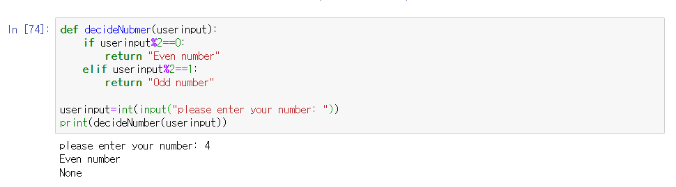 #python #anaconda #jupyter-notebook #visual-code #html #css #javascript #http 제목steo_o7_conditionalstatement 짝수/홀수 판정 프로그램 개발하기2022-09-30 17:42작성자isd왜 출력값 마지막에 None가 뜨는 지도 모르겠고(return 값 지정했는데도요) 어쨌든 답은 뜨는 거라고 생각을 했는데 자가진단에서 assertionerror가 뜨네요... 어디서 문제가 있는 걸까요?추가적으로 if문이나 elif문에 어떤 때는 괄호를 넣고 어떤 때는 넣지 않던데 상관없는 건가요? 목록수정삭제답변글쓰기 댓글 [1] 댓글작성자(*)비밀번호(*)내용(*) 댓글 등록 더보기이전[re]9/29 Lecture7 excercise 관련 질문박상근2022-10-04다음[re]steo_o7_conditionalstatement 짝수/홀수 판정 프로그램 개발하기수업도우미 권인회2022-09-30 Powered by MangBoard | 망보드 스토어